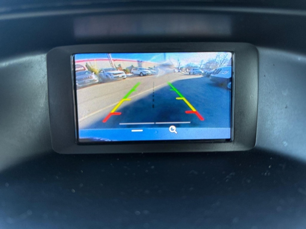 - The vehicle is equipped with a camera that displays an image of the area behind the vehicle on an interior display.