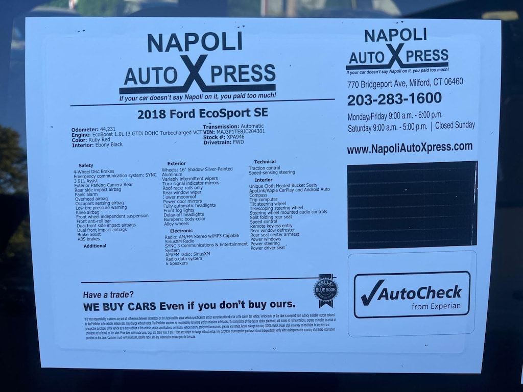 Come on in to Napoli Auto X Press today at 770 Bridgeport Ave Milford CT 06460 or call 203-283-1600 to schedule a test drive! And remember, if you car doesn't say Napoli on it, you paid too much!