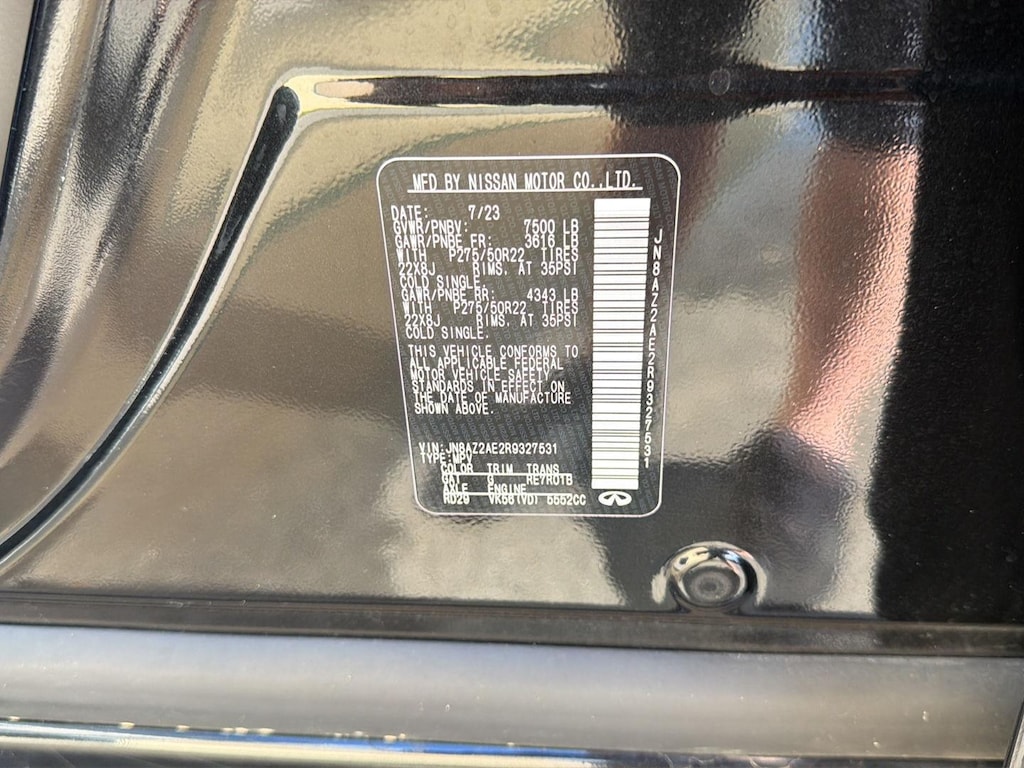 MINERAL BLACK, [N10] INFINITI RADIANT ILLUMINATED KICK PLATES, [C03] 50 STATE EMISSIONS, [P02] PREMIUM SELECT SAHARA STONE INTERIOR, [L92] CARGO PACKAGE, [B92] ROOF RAIL CROSS BARS, [S55] LITERATURE KIT