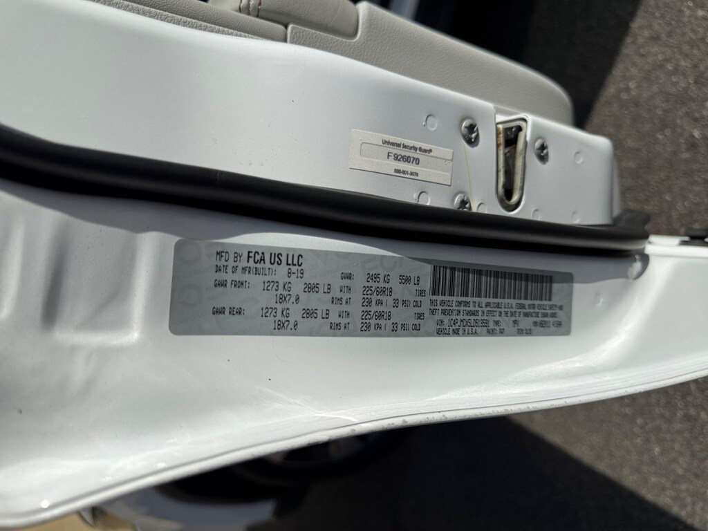 NORMAL DUTY SUSPENSION, ENGINE: 3.2L V6 24V VVT W/ESS, TRANSMISSION: 9-SPEED 948TE AUTOMATIC, QUICK ORDER PACKAGE 26G, 3.251 AXLE RATIO, WHEELS: 18 X 7 POLISHED/PAINTED ALUMINUM, TIRES: 225/60R18 BSW TOURING, BRIGHT WHITE CLEARCOAT, SKI GRAY/BLACK, PREMIUM LEATHER TRIMMED BUCKET SEATS, POWER FRONT/FIXED REAR FULL SUNROOF