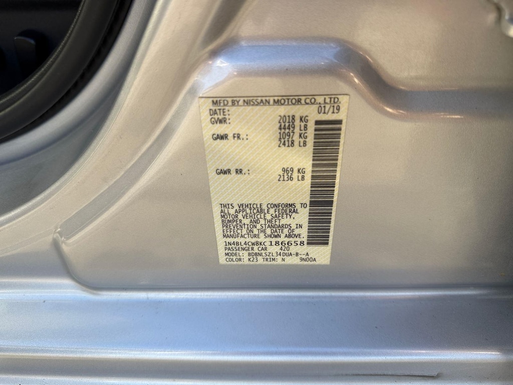 25/35 City/Highway MPG Odometer is 4581 miles below market average! Priced below KBB Fair Purchase Price!Brilliant Silver Metallic 2019 Nissan Altima Automatic 2.5L 4-Cylinder DOHC 16V AWD2.5 SR If you car doesn't say Napoli on it, you paid too much!Awards: * JD Power Automotive Performance, Execution and Layout (APEAL) Study * 2019 KBB.com 10 Most Comfortable Cars Under $30,000 * 2019 KBB.com 10 Best Sedans Under $30,000 * 2019 KBB.com 10 Best All-Wheel-Drive Vehicles Under $30,000